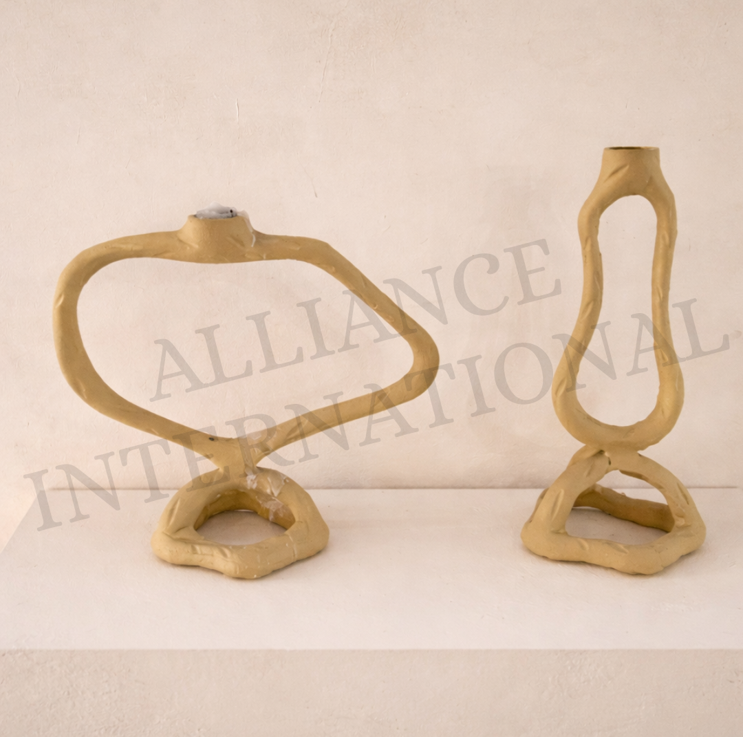 Elevate your home décor with this handcrafted cast aluminium abstract designer candle holder set, featuring two unique organic sculptural forms. Designed to combine modern art with functional décor, these candle holders create a bold and sophisticated statement in any interior setting.