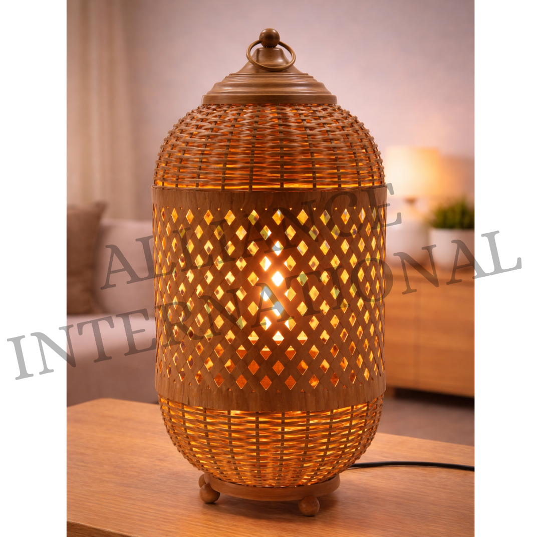 Add warmth, texture, and handcrafted elegance to your interiors with this beautifully designed rattan table lamp. Featuring a decorative cutwork wooden center shade combined with woven cane detailing on the top and bottom, this lamp creates stunning glowing light patterns that instantly enhance any room’s atmosphere.