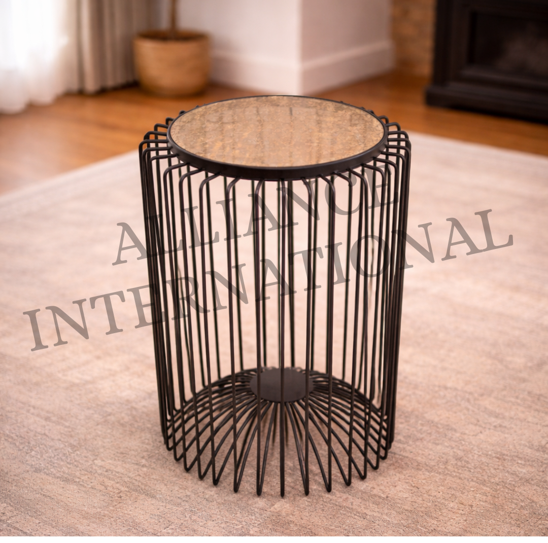 Enhance your interior styling with this modern designer round accent side table, crafted with a unique vertical metal wire cage structure and premium textured top surface. Designed to blend contemporary aesthetics with functional durability, this table is an excellent choice for modern homes and luxury commercial interiors.