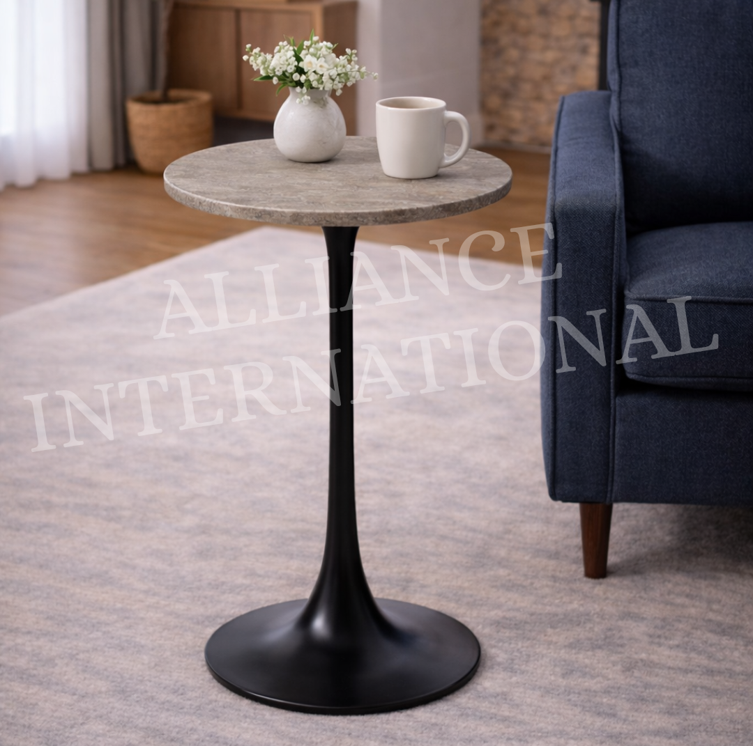Enhance your interior with this sophisticated modern marble top pedestal side table, designed to deliver a perfect blend of luxury, durability, and contemporary style. Featuring a premium stone/marble finish round tabletop paired with a sleek matte black metal pedestal base, this table adds a bold yet elegant statement to any space.