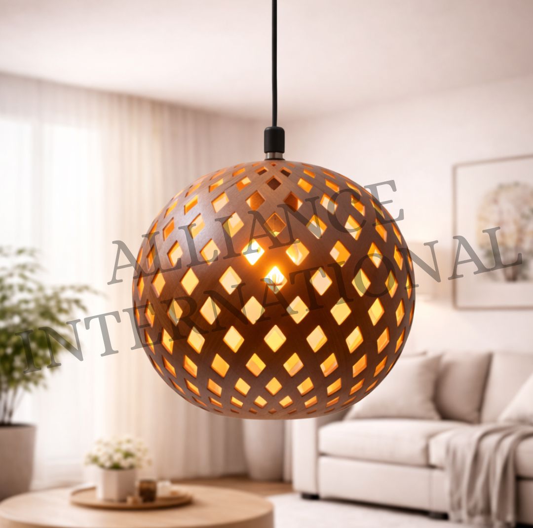 Upgrade your interior lighting with this premium handcrafted metal sphere cutwork pendant light, designed to deliver modern luxury aesthetics with warm ambient illumination. Featuring precision diamond-pattern perforated metal craftsmanship, this designer hanging ceiling lamp creates stunning light diffusion and decorative shadow patterns that enhance the beauty of any interior space.